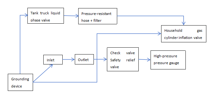 Ο χρυσός κανόνας για την ασφαλή πλήρωση του χρυσού έχει ως εξής: Πρώτον, η υπολειμματική πίεση του κυλίνδρου αερίου πριν από την πλήρωση πρέπει να είναι μεγαλύτερη από 0,05 MPa (για να αποφευχθεί η ανάμειξη του αέρα και η διαμόρφωση μιας εκρηκτικής ουσίας) και η ανίχνευση της στατικής αντίστασης της γείωσης ηλεκτρικής ενέργειας πρέπει να είναι ≤ 100 Ω. Δεύτερον, κατά τη διάρκεια της πλήρωσης, ο ρυθμός ροής πρέπει να ελέγχεται ως <0,5 m/s για να αποφευχθεί η συσσώρευση στατικής ηλεκτρικής ενέργειας και απαιτείται παρακολούθηση σε πραγματικό χρόνο για να σταματήσει αμέσως εάν η θερμοκρασία της δεξαμενής υπερβαίνει τα 40 ℃. Τέλος, μετά τη συμπλήρωση, διεξάγεται δοκιμή διατήρησης πίεσης και ανίχνευσης διαρροών. Το νερό σαπουνιού εφαρμόζεται σε όλες τις διεπαφές για να ελέγξετε εάν υπάρχουν φυσαλίδες και πρέπει να ανακτηθεί το υπολειμματικό υγρό από τον εύκαμπτο σωλήνα. Απαγορεύεται η άμεση απαλλαγή.
